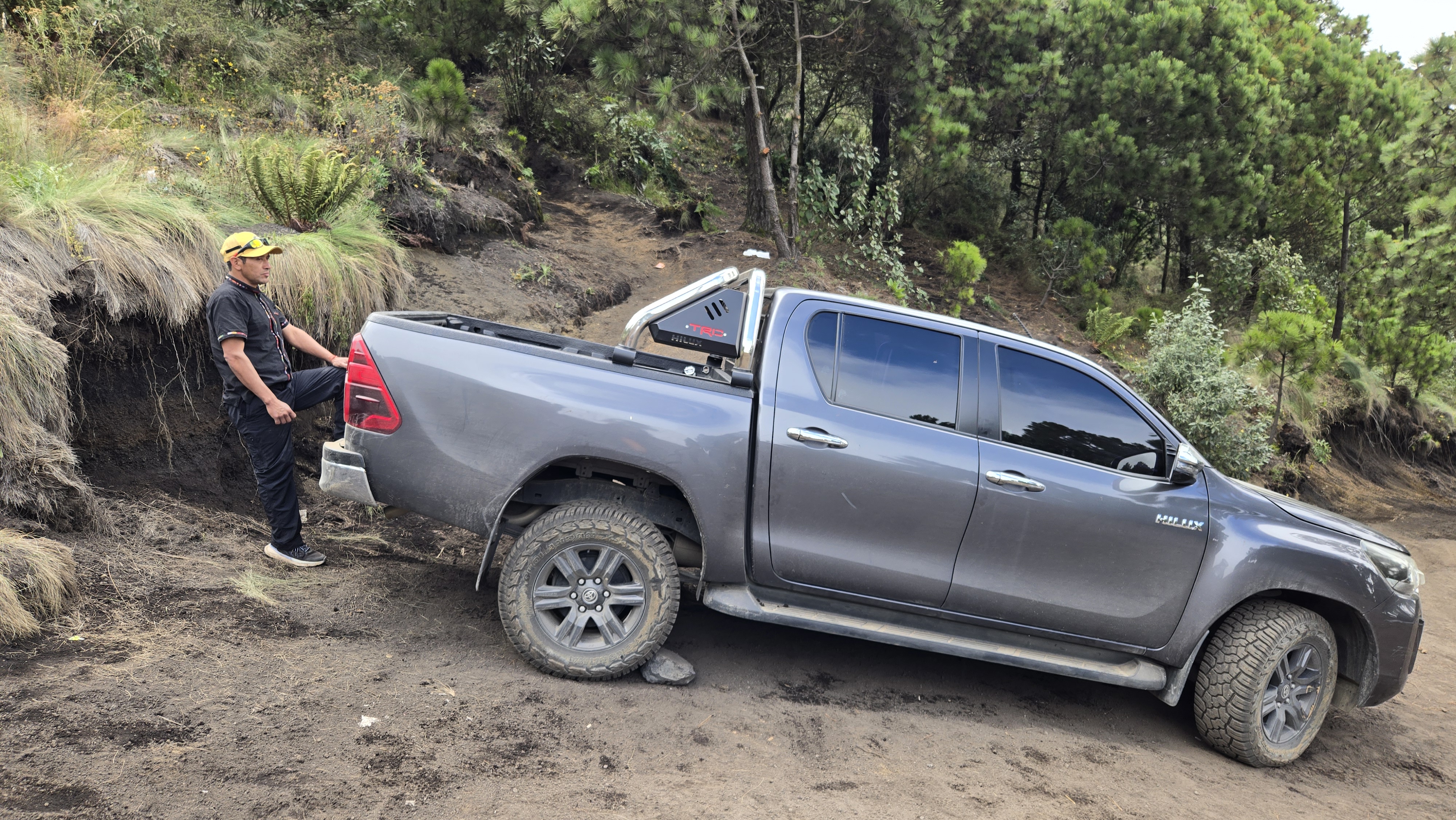 For those not pinching pennies, there’s an alternate option, ascending in a 4×4 most of the way. This was what I chose, and while it zipped me up in about an hour to the parking area, thus saving a lot of time, it was no easy ride. The trail is deeply rutted, steep enough to press you back against the seat, and often jounces over logs that are the only way to keep the ash-dirt mixture in place. One of the bounces slammed me hard on my coccyx, which reminded me of its mistreatment for the rest of the trip.