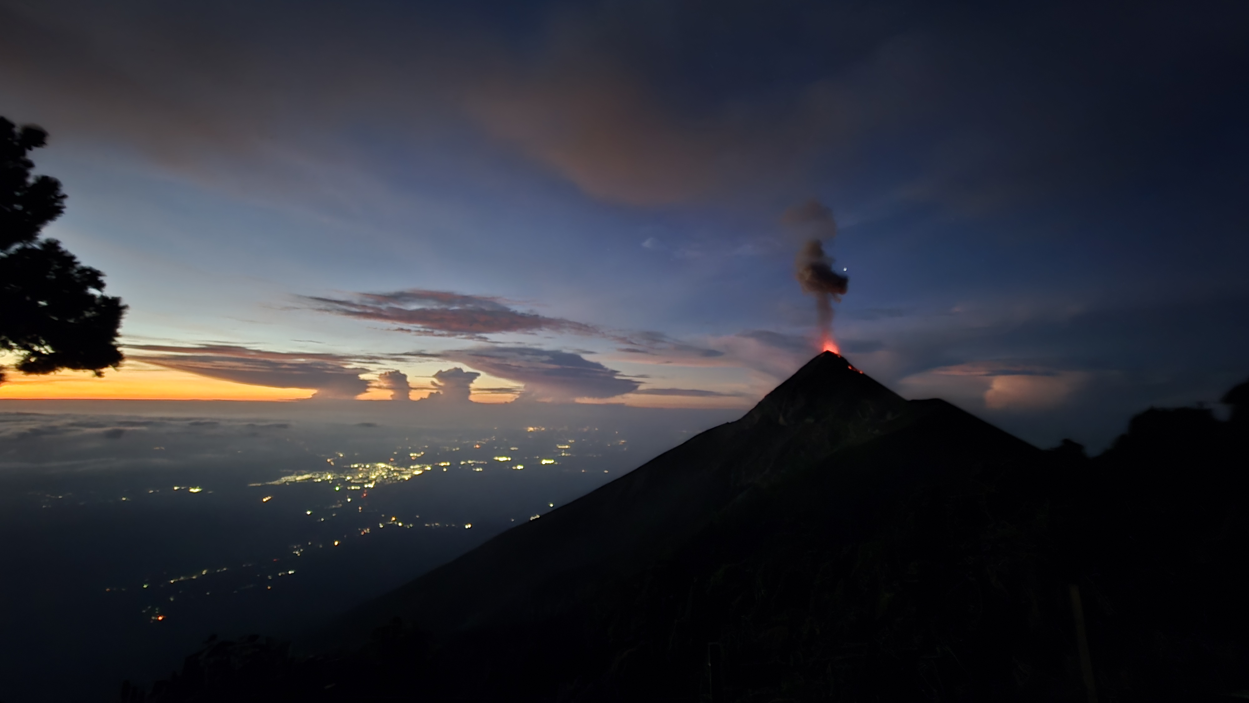And as darkness gathered, the eruptions got better. And better. I realized that the full majesty of Fuego is only visible at night. It’s impressive, even far away in the center of Antigua, to see a puff of ash rise thousands of feet into the sky, eventually dissipating in the wind. But to be so close, and to — as it got darker — be seeing the glowing molten lava, that was a different kind of show entirely. I’ve never looked at lava erupting before, even though I’ve seen many ash clouds, especially from my travels around the Pacific’s Ring of Fire.