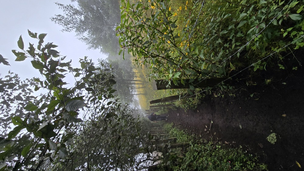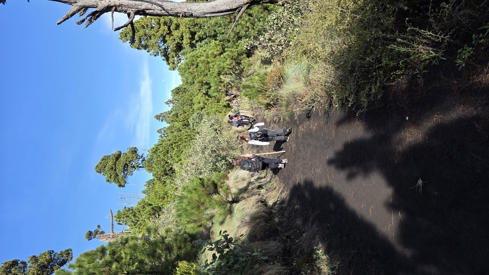 The hike, no beating around the bush, is a grueling one, steep incline the entire way, but it’s not precipitous. In the beginning, the trail rises up through milpas, traditional fields planted with corn, beans, and squash. Farmers wave, livestock watches quizzically, and for me, hiking in mid-November, everything was covered with carpets of bright yellow flowers. The trail is wide enough for groups of people to hike side by side, though it narrows and gets harder after the fields end.